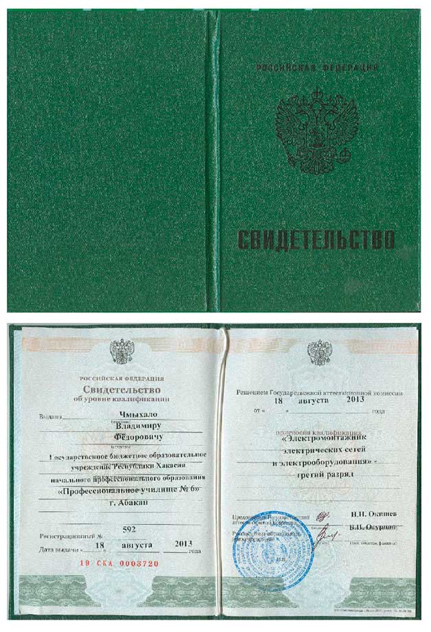 Специальность «Электромонтажник электрических сетей и электрооборудования» (свидетельство об уровне квалификации)