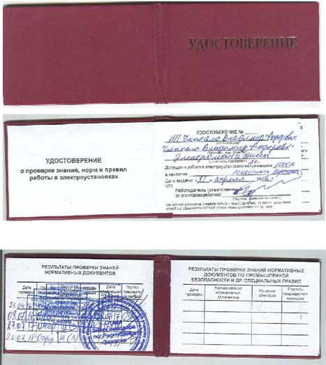 Допуск к работам в электроустановках Группа по электробезопасности III. Удостоверение.